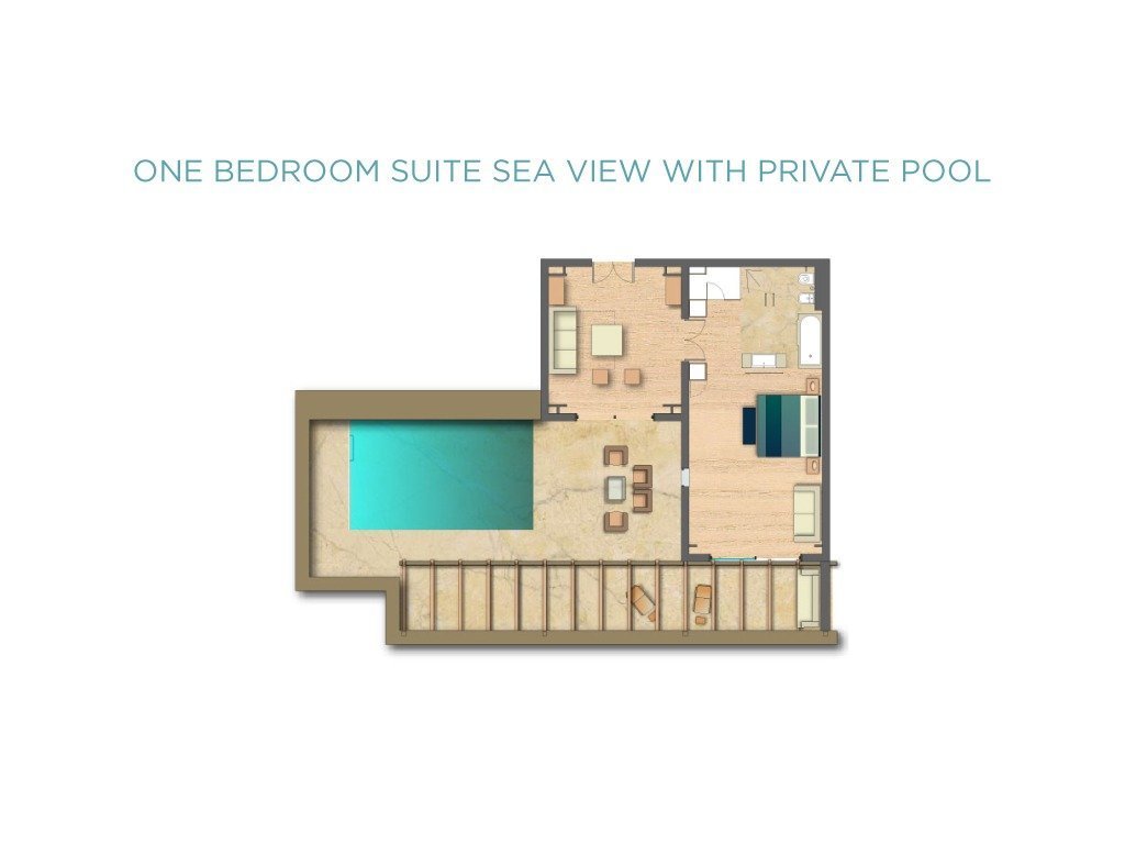 Enjoy breathtaking vistas of our private Cove and the elegantly appointed facilities of a suite that features a magnificent bedroom with separate living room, a lavish marble-lined bathroom with separate bathtub and shower cabin. Relax under the sun next to the private sea water pool.