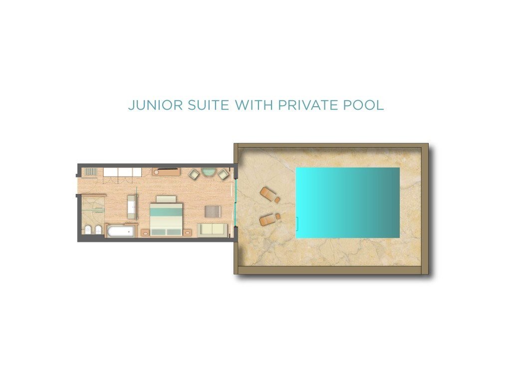 The spacious seating area and bedroom in open-plan style provide the absolute equilibrium between subtle luxury and homely familiarity. Our Junior Suites are composed of a marble-lined bathroom with separate bathtub and shower cabin, and a generous terrace with a private sea water pool where you can bask in the sun whilst taking in the stunning views of Daios Cove.